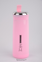 Бутылка для воды розовая стеклянная с зеркальной крышкой